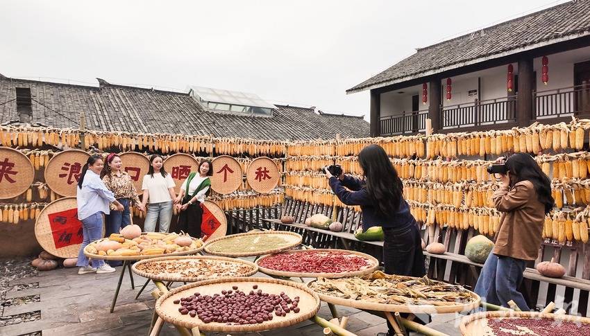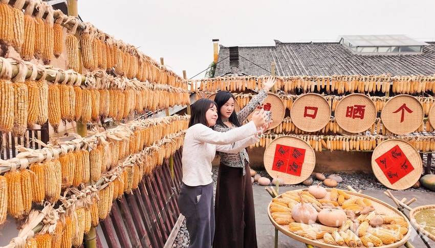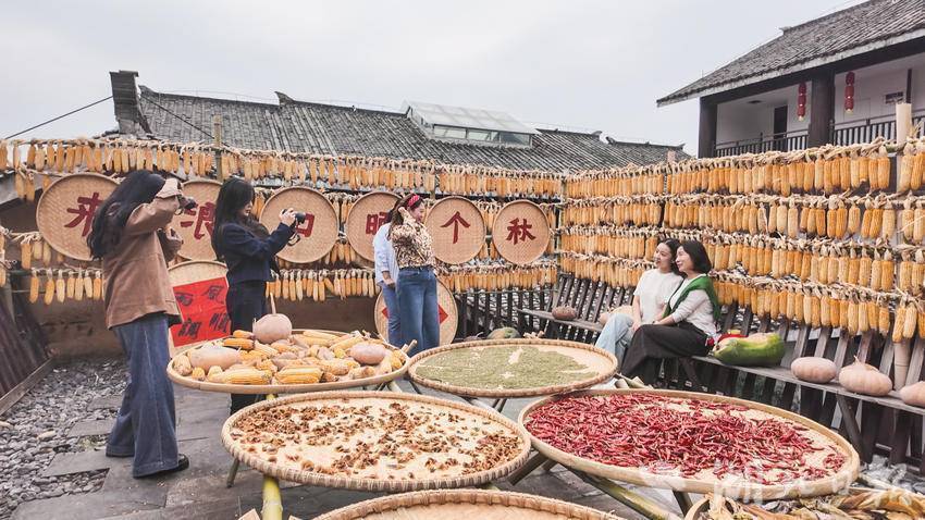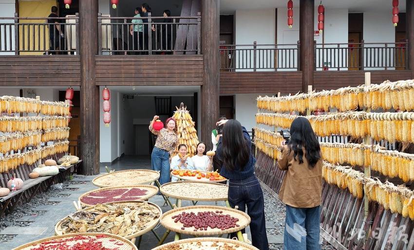 湖北日报客户端讯(通讯员夏飞洋)近日,崇阳三特浪口温泉度假区内增添一抹别样的“丰收色”。度假区新设的晒秋打卡点里,金黄玉米挂满木架、鲜红辣椒铺就“红毯”,吸引不少市民专程前来打卡,感受秋日独有的民俗韵味。